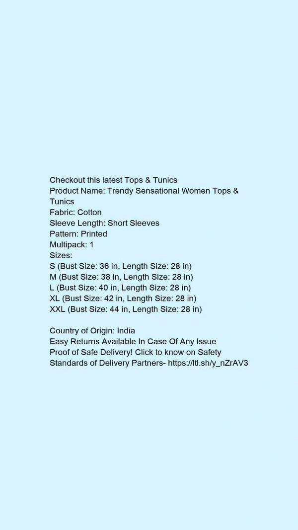 Product Name: *Trendy Sensational Women Tops & Tunics*Fabric: CrepeSleeve Length: Three-Quarter SleevesPattern: SolidMultipack: 1