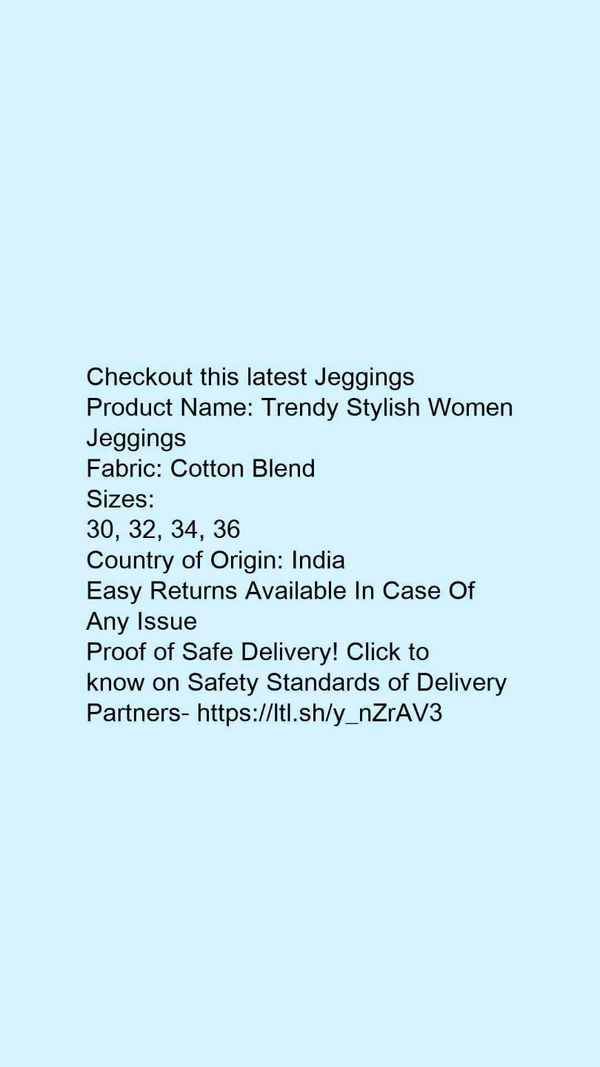 Product Name: *Trendy Stylish Women Jeggings*Fabric: Cotton Blend