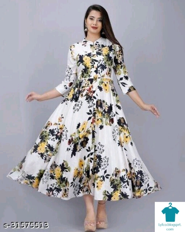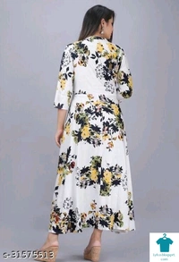 Product Name: *Trendy White Premium Yellow Flower Design Flared Kurti*Fabric: RayonSleeve Length: Three-Quarter SleevesPattern: PrintedCombo of: Single