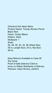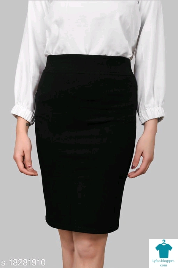 Product Name: *Trendy Women Pencil Black Skirt*Fabric: Cotton BlendPattern: SolidMultipack: 1