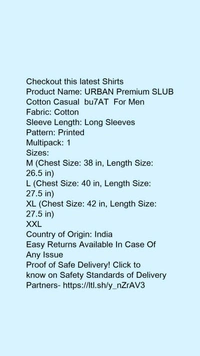 Product Name: *URBAN Premium SLUB Cotton Casual bu7AT For Men *Fabric: CottonSleeve Length: Long SleevesPattern: PrintedMultipack: 1