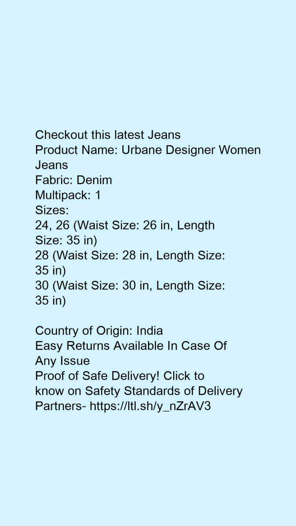 Product Name: *Urbane Designer Women Jeans*Fabric: DenimMultipack: 1