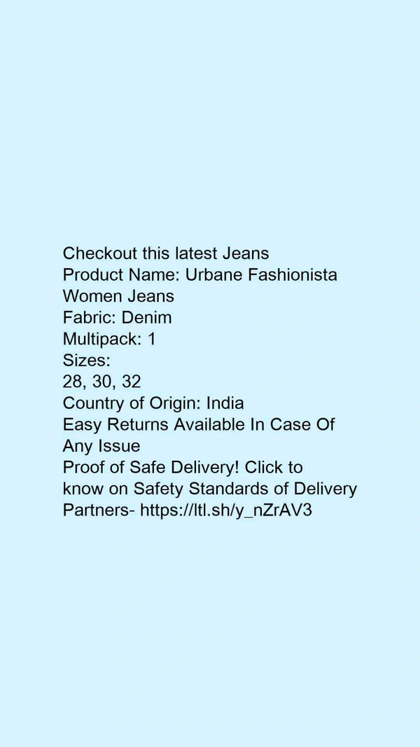 Product Name: *Urbane Fashionista Women Jeans*Fabric: DenimMultipack: 1