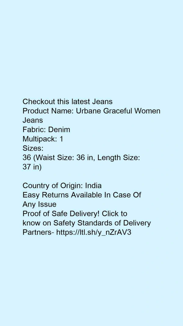 Product Name: *Urbane Graceful Women Jeans*Fabric: DenimMultipack: 1
