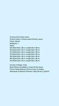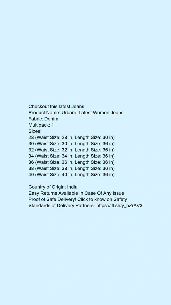 Product Name: *Urbane Latest Women Jeans*Fabric: DenimMultipack: 1