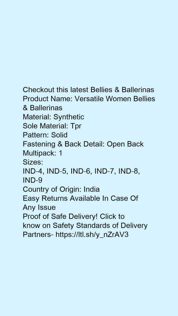 Product Name: *Versatile Women Bellies & Ballerinas*Material: SyntheticSole Material: TprPattern: SolidFastening & Back Detail: Open BackMultipack: 1