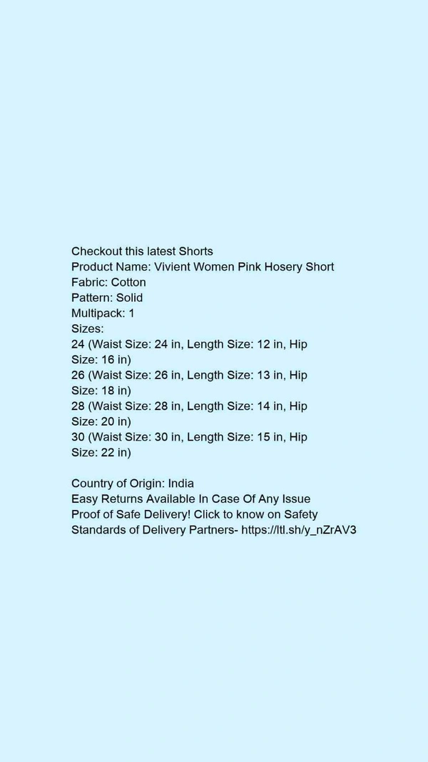 Product Name: *Vivient Women Pink Hosery Short*Fabric: CottonPattern: SolidMultipack: 1
