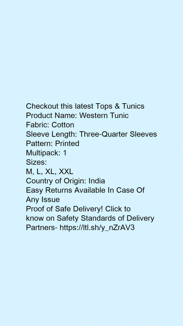 Product Name: *Western Tunic *Fabric: CottonSleeve Length: Three-Quarter SleevesPattern: PrintedMultipack: 1