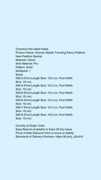 Product Name: *Woman Stylish Trending Fancy Flatform Heel Fashion Sandal*Material: VelvetSole Material: PvcPattern: SolidMultipack: 1
