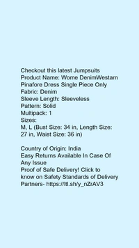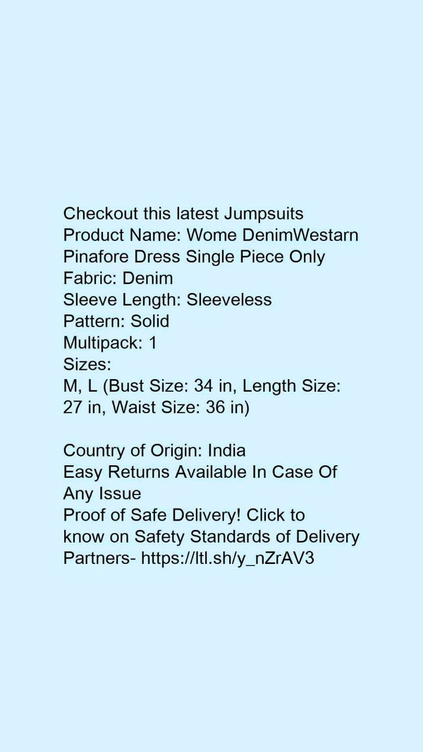 Product Name: *Wome DenimWestarn Pinafore Dress Single Piece Only*Fabric: DenimSleeve Length: SleevelessPattern: SolidMultipack: 1