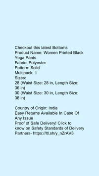 Product Name: *Women Printed Black Yoga Pants*Fabric: PolyesterPattern: SolidMultipack: 1