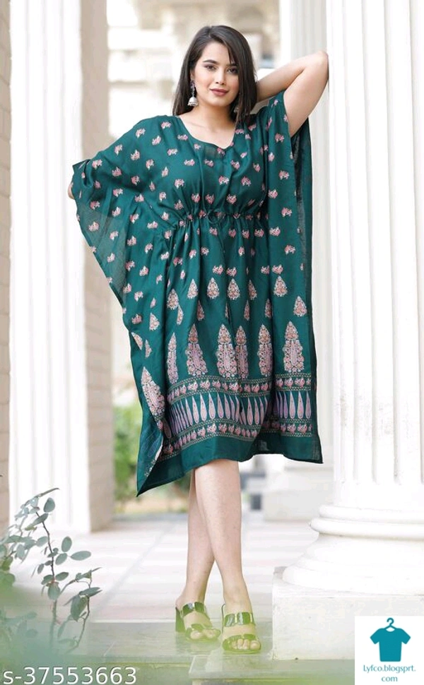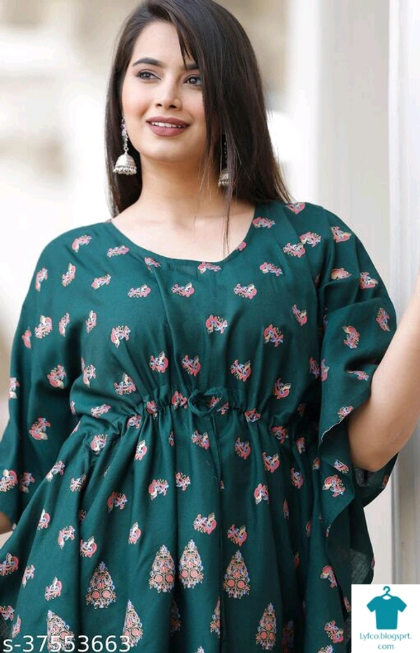Product Name: *Women rayon kaftan*Fabric: RayonSleeve Length: Short SleevesPattern: PrintedCombo of: Single