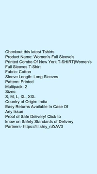 Product Name: *Women's Full Sleeve's Printed Combo Of New York T-SHIRT|Women's Full Sleeves T-Shirt*Fabric: CottonSleeve Length: Long SleevesPattern: PrintedMultipack: 2