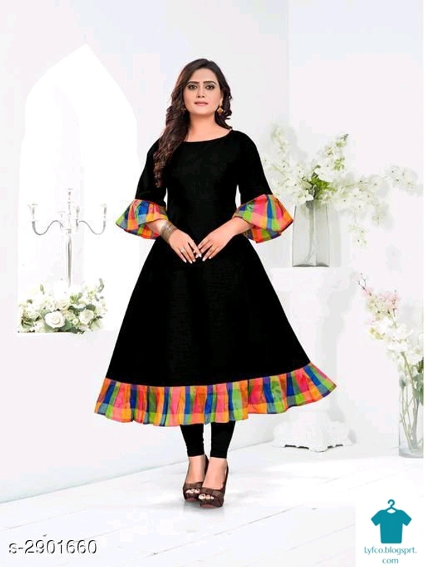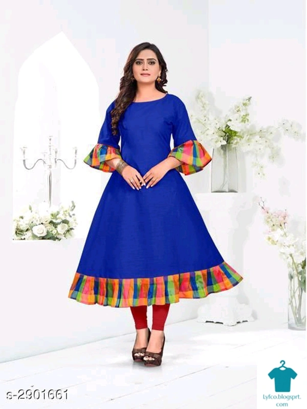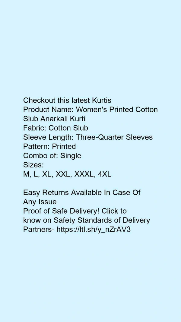 Product Name: *Women's Printed Cotton Slub Anarkali Kurti*Fabric: Cotton SlubSleeve Length: Three-Quarter SleevesPattern: PrintedCombo of: Single