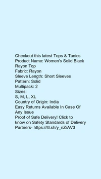 Product Name: *Women's Solid Black Rayon Top*Fabric: RayonSleeve Length: Short SleevesPattern: SolidMultipack: 2